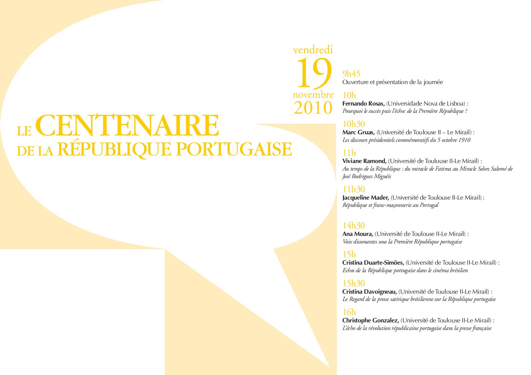 Journée d'études Le Centenaire de la République portugaise