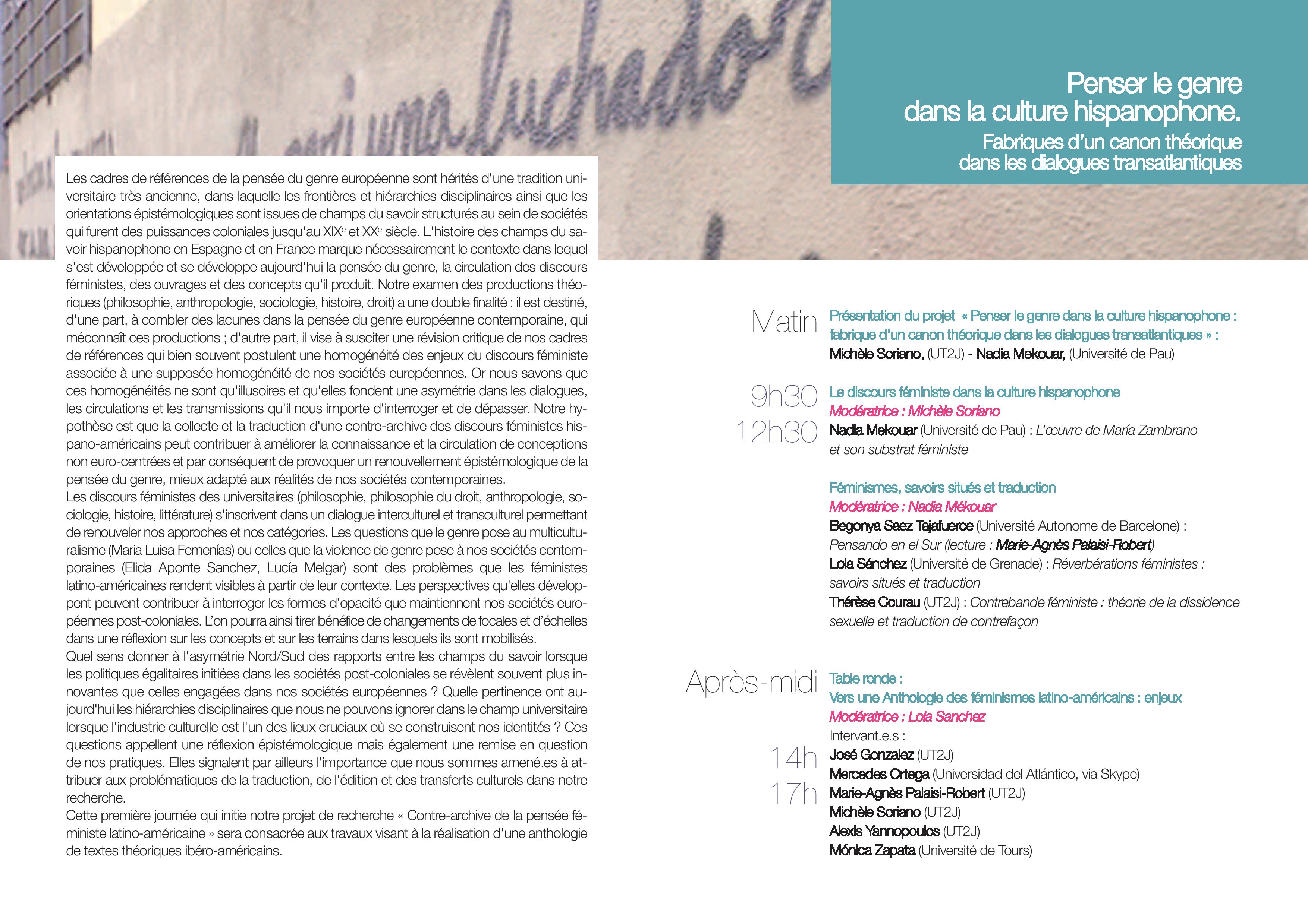 Cette première journée qui initie notre projet de recherche « Contre-archive de la pensée féministe latino-américaine » sera consacrée aux travaux visant à la réalisation d'une anthologie de textes théoriques ibéro-américains.